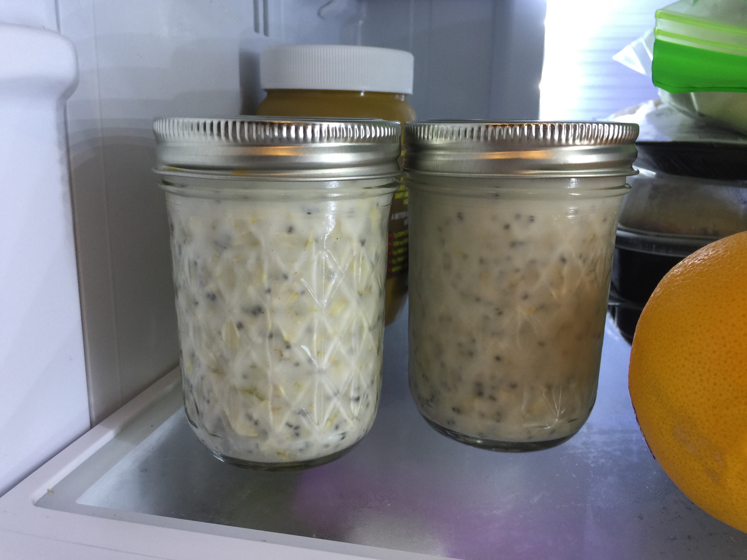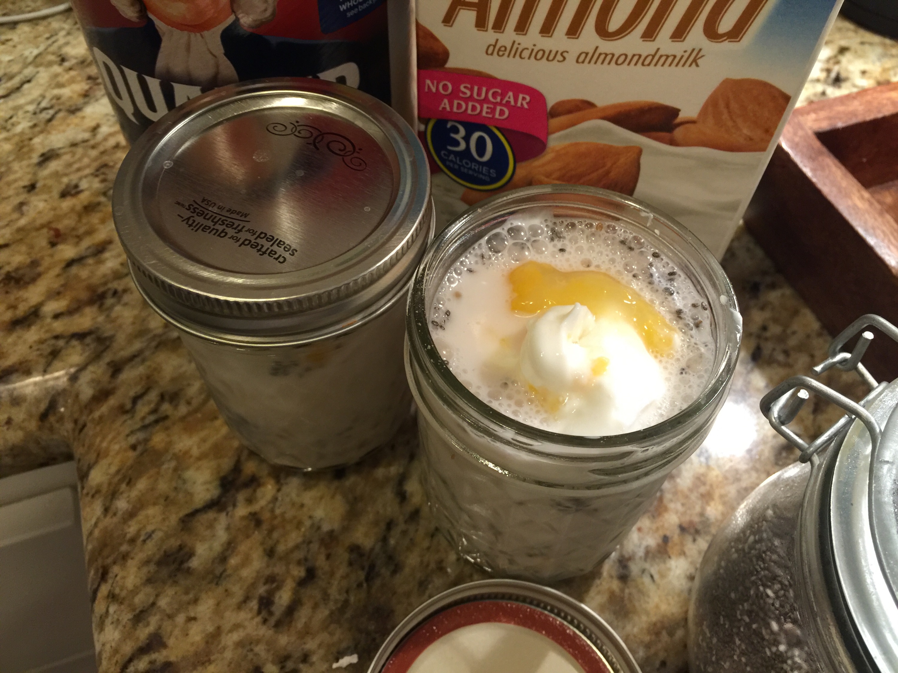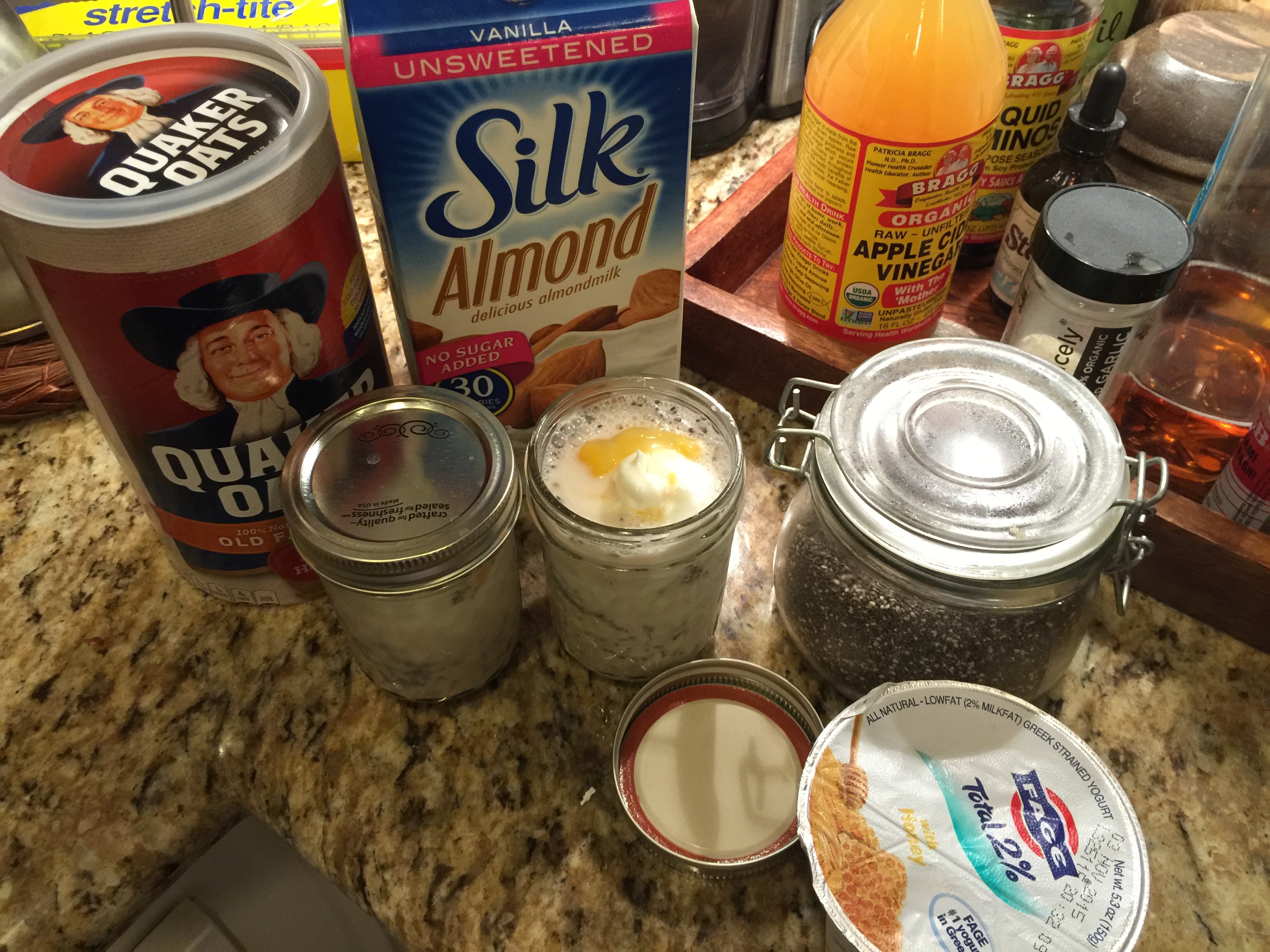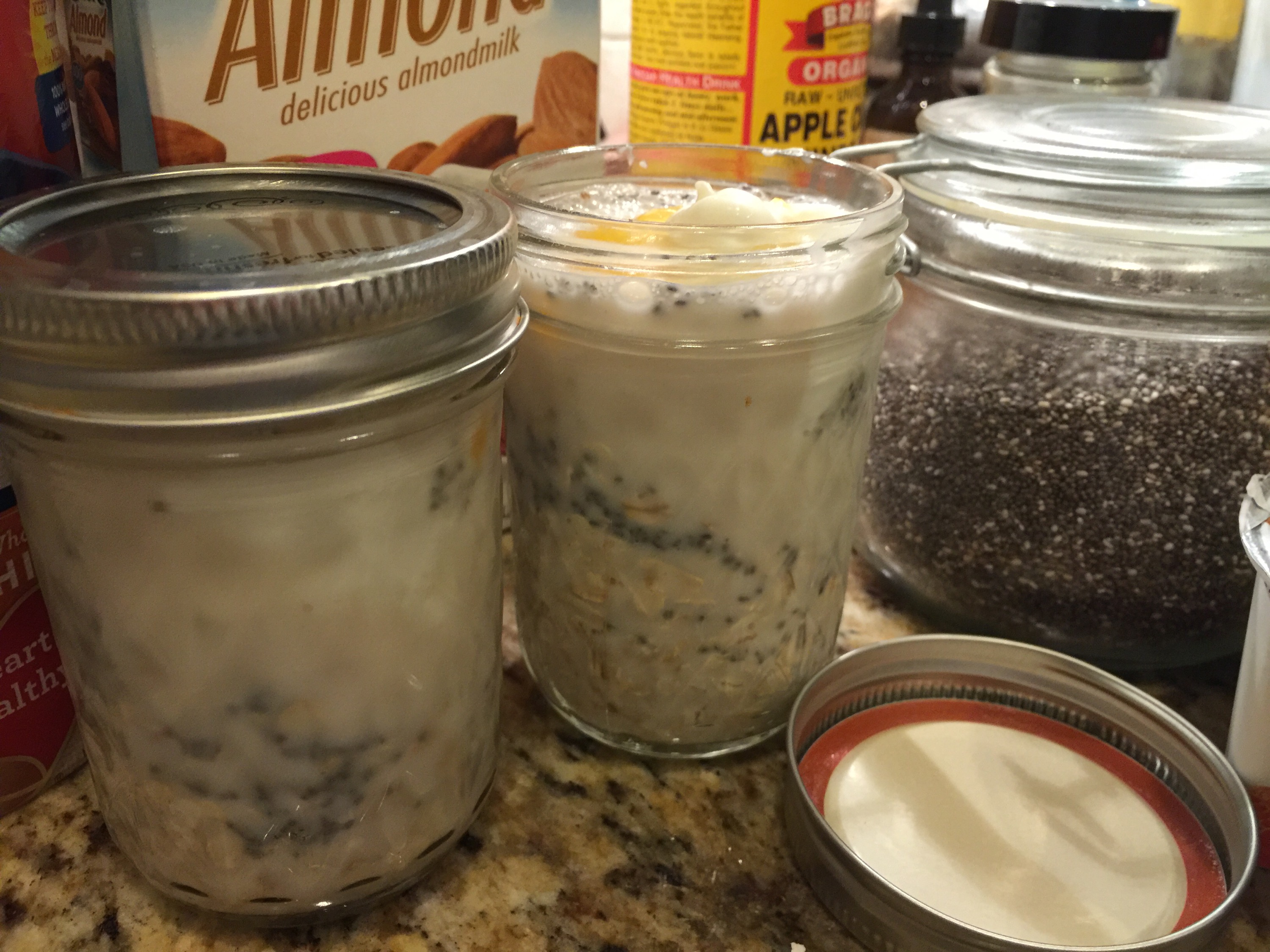 As you can see, the simple ingredients I used are Old Fashioned Oats, unsweetened almond milk, greek yogurt (flavored or plain), chia seeds and agave nectar.