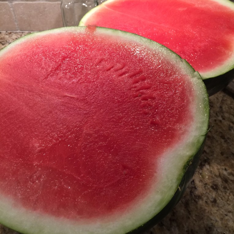 We’ve been buying watermelon for more than a week now.  Prices are going down and it is getting cheaper and cheaper, truly a bargain.  I just bought 2 whole seedless watermelons at Wholefoods Market today for $2.49 each.
